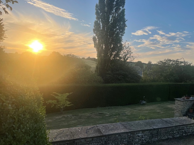 Finally off to Gaye and Ollie who provided wine, beer and nibbles while we basked and watched the sun go down over the Oxfordshire Way. An excellent end to the evening.